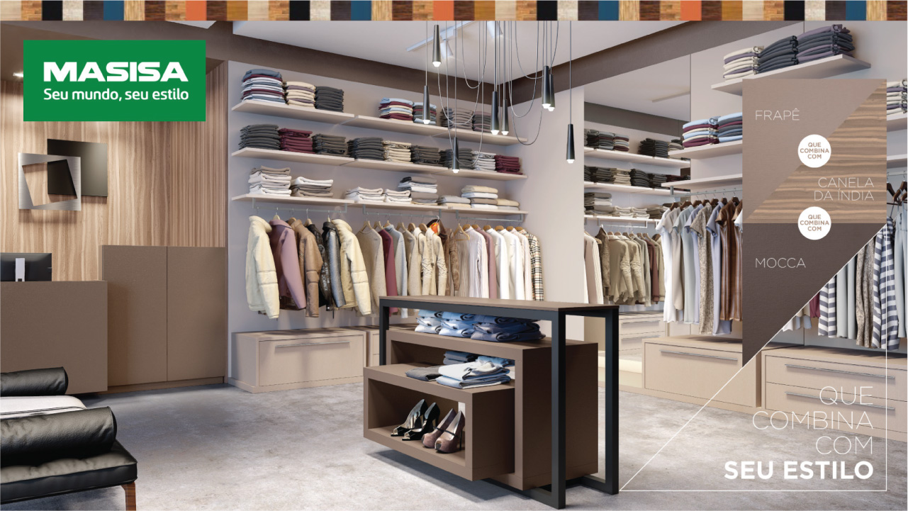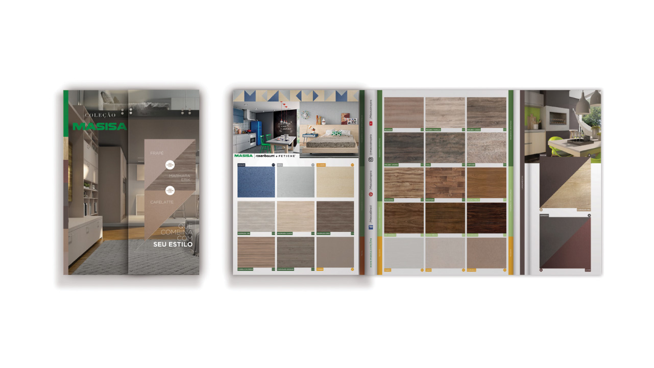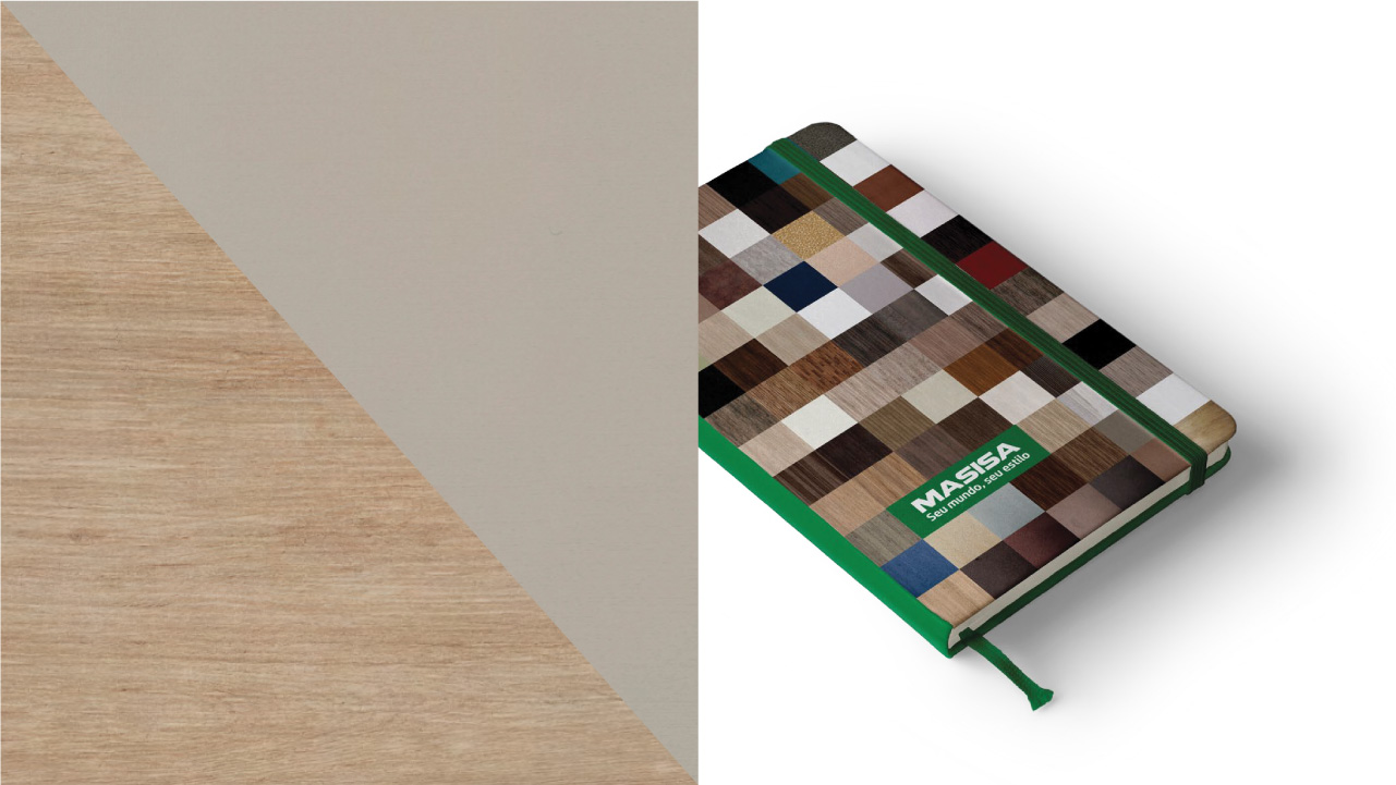 Criação de um conceito e de uma forma de apresentação que facilitasse aos marceneiros a indicação da variedade dos padrões da Masisa e, também, que facilitasse a consulta direta do consumidor final. O conceito adotado para atender a todos os desafios foi o “que combina com”.